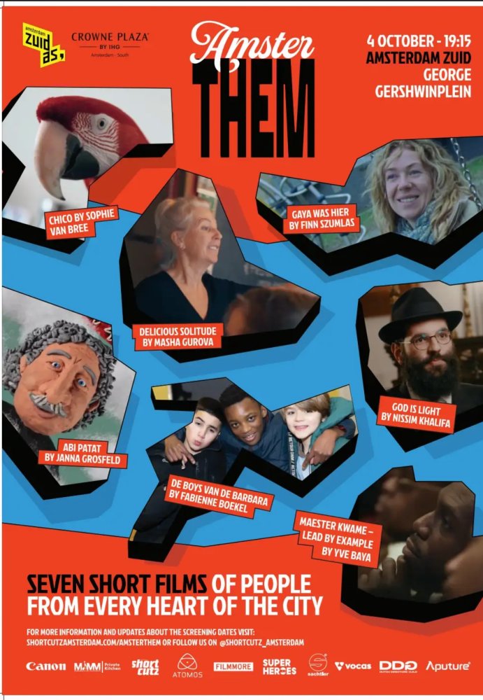 Op zaterdag 4 oktober verandert het George Gershwinplein opnieuw in een openluchtbioscoop. Shortcutz Amsterdam organiseert daar een speciale vertoning van Amsterthem, een filmproject bestaande uit zeven korte portretten van Amsterdammers uit de zeven stadsdelen van de hoofdstad. De toegang is gratis.